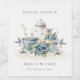 Söt akvablå floral tekanna koppar bröllopsdusch vinflaska etikett