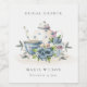 Söt akvamarinblå blomstertepottskoppar bröllopsdus vinflaska etikett