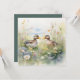 Söt akvarell ankor näbb mot näbb tom kort. Mörkgrön baksida version.