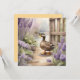 Söt akvarell anka och lavendel, tom välkomstkort. Vacker naturdesign. Version med gul baksida.