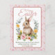 Njut av vårens sötma med denna bedårande akvarell kanin inklämd i en frodig blomsterkrans - med mjuka persikor på pioner, gula ranunkler, salvia grönska och ömtåliga suckulenter. Den centrala illustrationen är inramad av en mjuk rosa rundad kant, allt på en charmig upprepad bakgrund av små morötter, kaniner och orden “Hej”, “Kärlek”, “Söt”, “Kanin” i lekfullt skrivstil på texturerat rosa papper.