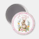 Njut av vårens sötma med denna bedårande akvarell kanin som är bofast i en frodig blomsterkrans - med mjuka persikor på pioner, gula ranunkler, salvia grönska och ömtåliga suckulenter. Den centrala illustrationen är inramad av en mjuk rosa rundad kant, allt på en charmig upprepad bakgrund av små morötter, kaniner och orden “Hej”, “Kärlek”, “Söt”, “Kanin” i lekfull stil på texturerat rosa papper.