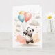 Söt akvarell panda gula blå ballonger tom kort