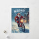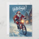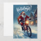 Sprid festlig glädje med detta charmiga julkort som visar Tomten cyklar genom en snöig stad. Designat i en mysig akvarellstil med "God Jul"-hälsningar, är denna fantasifulla julhälsning perfekt för familj, vänner, kollegor eller grannar. Ett förtjusande och unikt julkort för att dela med sig av årstidsvärmen och glädjen. Lätt att anpassa för ditt personliga meddelande.