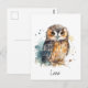 Skicka ett leende till en vän eller familjemedlem med detta söta akvarell-ugglapostkort. Designen visar en snäll, storögd uggla i en mjuk, konstnärlig stil, vilket gör det till ett trevligt sätt att säga hej, skicka ett tack eller dela ett speciellt minne. Det är ett sött och enkelt sätt att lysa upp någons dag.