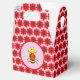 Denna fantastiska favörlåda har en söt liten Alla hjärtans dag-bina. Biet har en luddig gul kropp med svarta ränder och röda antenner. Den håller i en röd hjärtformad bit bikupa och är omgiven av solrosor. Varje blomma har röda kronblad för att matcha den romantiska bina och en svart mitt. Det finns vit text i mitten av bikupan som säger det romantiska meddelandet "Bee mine" (Var min). Denna lilla bina är idealisk för att visa sin kärlek för någon speciell.