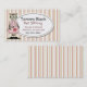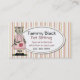 Den gulliga älsklings- barnvaktvisitkorten som gjordes i en blek solbränna, ett dammigt rosa och en vit, görade randig bakgrund, och landdiagram av en uppklädd grånar kattinnehav en blomma. Ett ovalt textområde för vit, i mittet, har en kaki- oval gräns, och texten är fullständigt anpassadet som passar dina behov. Roligt långt som annonserar din affär.