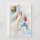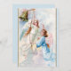 vintage som målar två änglar med blå och vit cloaks som håller en guld-sladd och ringar en klocka i himlar.