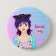 Söt Anime-flicka och kawaii kopp av kaffe Knapp