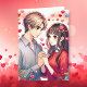 Personlig Alla Hjärtans-dags kort. Söt anime-par som håller hand omgiven av hjärtan. Du kan anpassa texten på insidan av kortet och lägga till ditt foto.