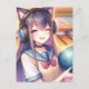 Söt animeflicka på bowling-födelsedagsfest vykort