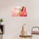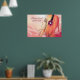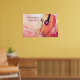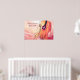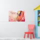 Söt animerad tjej med hörlurar i rosa toner på en poster.
