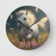Söt anpassad blom- enhörning flyger litet ponny rund klocka