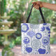Söt anpassad namn abstrakt blomst konstnärlig blå tygkasse