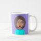 Färgstark, ljus, abstrakt design av en stiliserad ansikte av en flicka med brunt hår, perfekt för hemmet eller på arbetsplatsen eller på kontoret, ett unikt mugg som framstår som ditt.