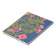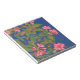 Ett mycket söt och snyggt Anteckningsblock, med skarp rosa japonica (japansk kvince) på en djup blå bakgrund, från en silkesavtryck av Judy Adamson.