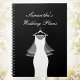 Stilfull spiralbuntdagbok eller anteckningsbok för bröllopsplanering med bröllopskjol design. Söt personlig svart-vit organiserare för det engagerade paret som gifter sig / blivande brud och brudgum som planerar sitt bröllop. Elegant typsnitts typografi med bröllopskjol och slöja på en galge illustration. Skapa din egen praktiska lilla dagbok för din att-göra-lista, budget, idéer, kostnader, anteckningar, planer, drömmar etc. Kan också användas som gästbok på bröllopsplatsen. Byt bara formuleringen.