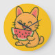 Fyll din yta med glädje med denna bedårande kawaii väggklocka som visar en glad orange katt som mumsar på en skiva vattenmelon 🐱🍉.