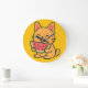 Söt apelsin katt som äter vattenmelon väggklocka