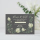 Den här OSA kort för blommigt av elegant har en komplicerad botanisk design med mjuka elfenbensblommor som lätt krymper över en djup träkolbakgrund. Den romantiska kalligrafin och den delikata detaljen skapar en förfinad men modern estetik, perfekt för vintage, gotik eller kvällsmat i bröllop. Ett sofistikerat sätt att samla in svar från dina gäster samtidigt som man kompletterar ett tema för blommigt bröllop.