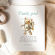 Detta söta tacksamhetskort för baby shower har en akvarellbjörn utklädd till astronaut under orden "Tack" i blågrön handtryckning. Anpassa texten med ditt meddelande i kolgrå sans serif-teckensnitt och blågrön handtryckt signatur.
