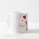 En charmig och romantisk keramikmugg med en glädjefull illustration av ett par som delar en lekfull ryggbacke-ritt. Mannen bär kvinnan medan hon håller en stor röd hjärtballong, omgiven av delikat röd konfetti och hjärtan.