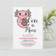 Söt axolotl över månen som håller påskägg inbjudningar