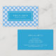 Visitkorten som presenterar ett baby blue ginghammönster med en blått, centrerar på bekläda. Kortet har en matcha blåttbak. Denna moderiktiga visitkort är ideal för lik inre formgivare för olika yrken, kock, bagare, bloggare, babysitter, Etc.