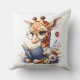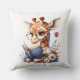 Söt baby-giraff som läser bok med glasögon kast kudde
