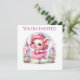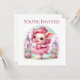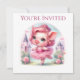 En söt ballerina gris dansar framför ett sagoslott. Perfekt för en flickas födelsedagsfest eller baby shower. Lägg till din egen anpassade text.