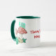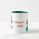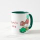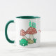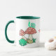 Färgrik mugg för barntecknadkonstverk, med en koppla ihop av dämpade röda champinjoner, med en grön groda- och krickasnigel. Personifiera med ditt barns namn för en speciell gåva någon ungen skulle kärlek.