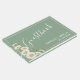 Söt bröllop guestbook-designen har vattenfärgsvit daisy hörn på grund av grönt med vita textblock i anpassade i modernt typsnitt