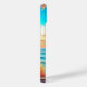 Söt blue och tan dreamcatcher hängande i ett fönster som förbiser stranden med söt vit sand och blå vinkar.