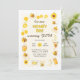 Fira din lilla honungsbinas speciella dag med denna söta honungsbi-inspirerade 5-års födelsedagsinbjudan! Designad med varma gula toner, charmiga surrande bin, bikakor och ömtåliga blommiga accenter, är denna inbjudan det perfekta sättet att inbjuda familj och vänner till en "bi-dags" firande. Framsidan av kortet visar en lekfull "Vår lilla honungsbi fyller fem" design, medan baksidan visar en söt, leende bi omgiven av mindre bin och en mjuk, vågig kant.