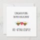 Den här söta bikort med rolig förlovningstext och ett mysigt bietema är perfekt för att skicka dina varmaste förlovningsönskningar till en förlovad släkting eller vän. Med en söt kärlekspun och hjärtliga förlovningsgrattis förkroppsligar detta kort dina varma gratulationer när de beger sig mot sin bröllopsdag. De lekfulla förlovningscitataten och den binspirerade designen gör det till ett glädjande val för att fira deras kärlek. På kortets framsida står det varmt ”Grattis till er förlovning. B-beautiful couple.” På baksidan tillkommer lekfullt ”Jag surrar av glädje över er förlovning!” Du kan också anpassa detta kort för din familjemedlem eller vän som är förlovad, vilket gör det extra speciellt och meningsfullt. Detta kort är