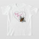 Söt Bimig Hjärtform t-shirt! Har en illustration av en humla som formar ett hjärta. Inuti hjärtat finns citatet Bee Mine i söt rosa typografi tillsammans med söta små rosa dekorationer.