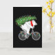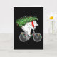 Söt björn bär julgran present till cyklist kort