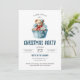 Söt julfestinbjudan med en illustration av en blå cupcake och en björn med snöflingor. Anpassa den med dina festdetaljer och RSVP-information.