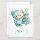 Tackkort med en bedårande illustration. En mysig björn med stjärnor och gnistrande päls. Står bredvid en julgran. Pastellblå-grön färg. Drömsk och söt.