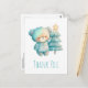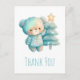Tack-kort med en förtjusande illustration. En mysig björn med stjärnor och gnistrande päls. Står bredvid en julgran. Pastellblå-grön färg. Drömsk och söt.