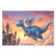 En charmfull blå drake svävar fredligt ovanför ett sagoslott under en varm solnedgång. Denna fantasifulla konstverk har mjuka pastellfärger och en sagostämning som för med sig magi och under till alla miljöer.