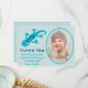 Söt blå geckoödla barn fotofödelsedag tack kort