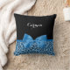 Få din kvinnliga sida att framträda med denna snygga blå jaguartryckta kudden och ett fint blått band som är knutet i en feminin rosett. Personifiera denna vackra djurtryckta design genom att lägga till ditt namn. Platt tryckt bild, inte verklig rosett.