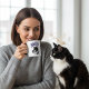 Söt men elegant CAT MAMMA designad mugg med akvarell av katt och ett utrymme för hans/hennes namn. PERSONALISERA denna design, akvarellporträttet av katten kan ersättas med ett foto av din älskade katt, likaså namnet 'Milo' kan också ersättas med den text som tillhandahålls genom att LÄGGA TILL DIN EGEN KATTS NAMN, ANPASSA DENNA DESIGN genom att lägga till dina egna personliga element! FOTO och/eller TEXT SOM EN KEEPSSAKE av din älskade husdjur.! (för att anpassa denna design, använd REDIGERINGSVERKTYGET på produktsidan för denna produkt för att ersätta akvarellen med ditt eget foto om du så väljer, byt återigen ut mallens NAMN MOT DIN EGEN KATTS NAMN genom att skr