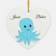 Söt blå oktopus med ditt namn julgransprydnad keramik