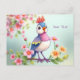 Vacker Söt Blå Rosa Fågel Blommig Postkort