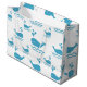 Minimalistisk valmönstrad presentpåse med lekfulla havsvågor och vattensprut i mjuka blå nyanser. Rent, modernt och lugnande formspråk med en söt marin känsla. Perfekt för barn, havsentusiaster och fans av nautiska teman.