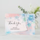 Ett kort med vackert blåa blommor på rosa. En bild av en rektangulär formad anteckningsbokssida som läggs ovanpå så att du kan skriva texten inuti.