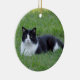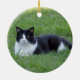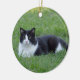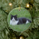 Söt Black and White Tuxedo Cat Photo Julgransprydnad Keramik