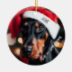 Söt Black och Tan Doberman med Santa Hat Julgransprydnad Keramik